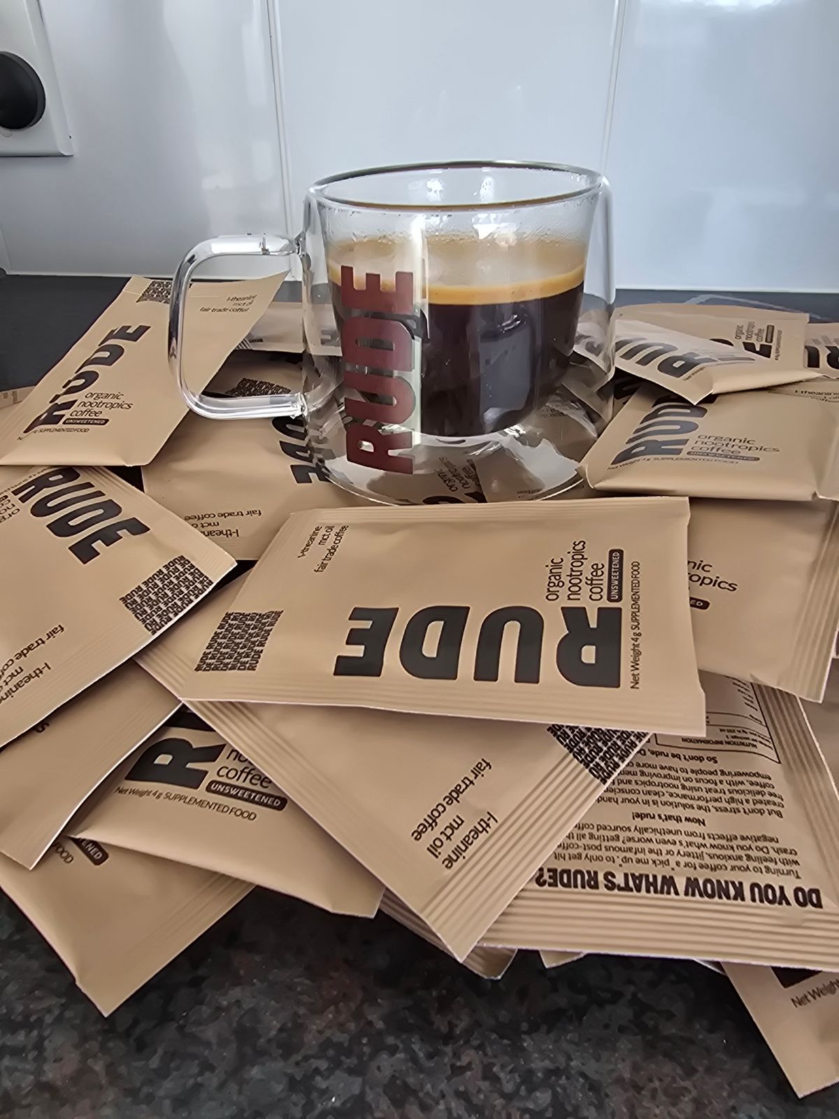 - RUDE Coffee has caffeine so it still provides the energy hit we love but the added nootropic ingredients reduce any negative side effects like anxiety, jitters, headache and energy crash. These nootropics also improve clarity and focus.