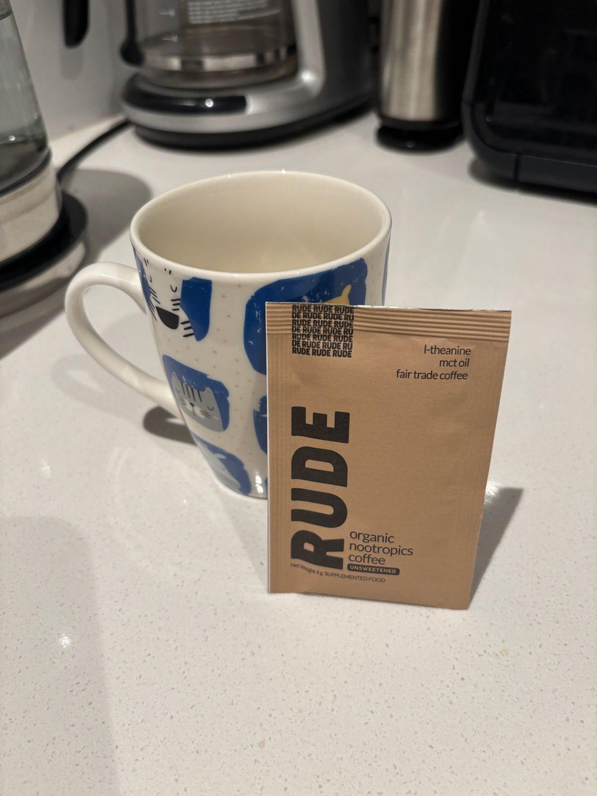 • RUDE Coffee has caffeine so it still provides the energy hit we love but the added nootropic ingredients reduce any negative side effects like anxiety, jitters, headache and energy crash. These nootropics also improve clarity and focus.