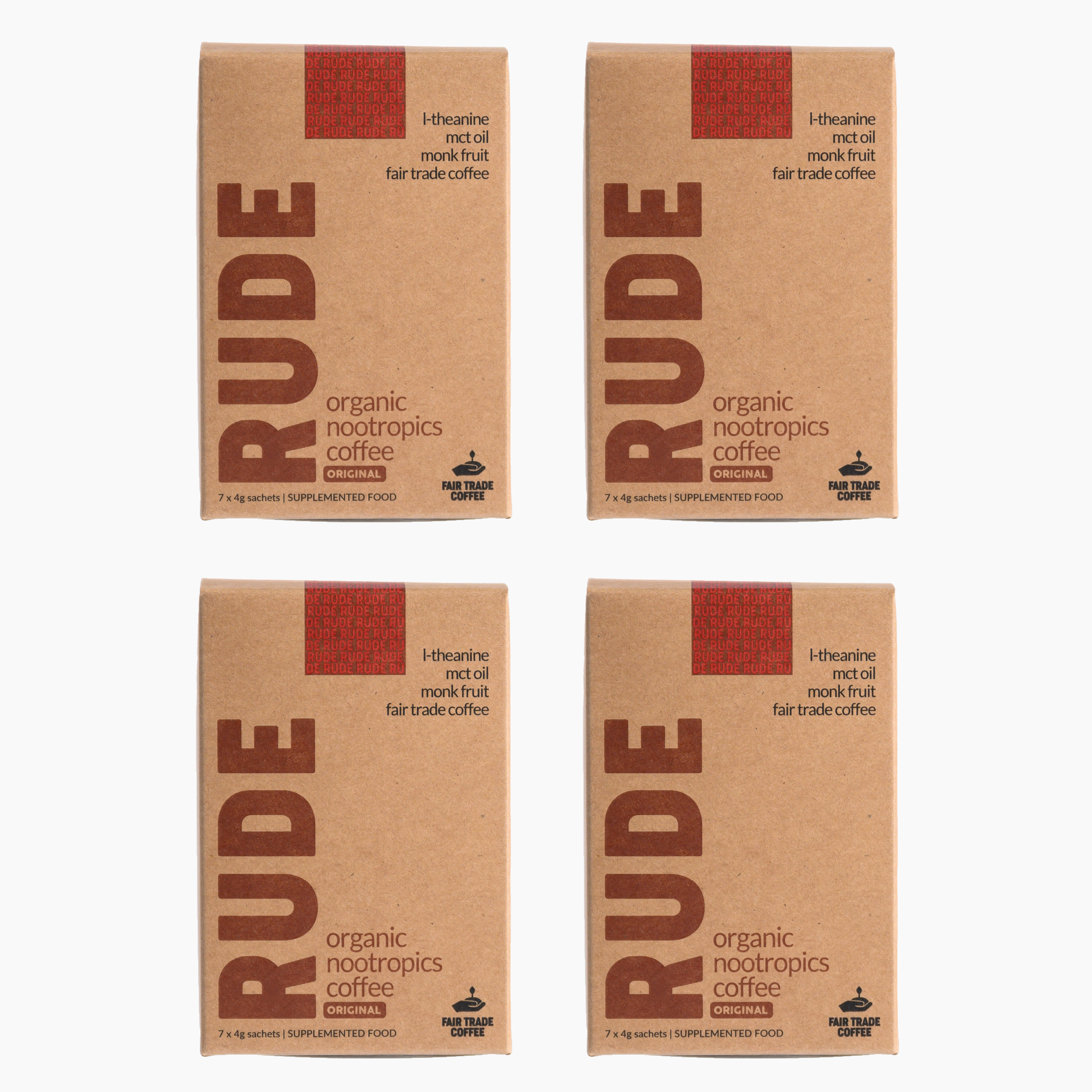 • RUDE Coffee has caffeine so it still provides the energy hit we love but the added nootropic ingredients reduce any negative side effects like anxiety, jitters, headache and energy crash. These nootropics also improve clarity and focus.