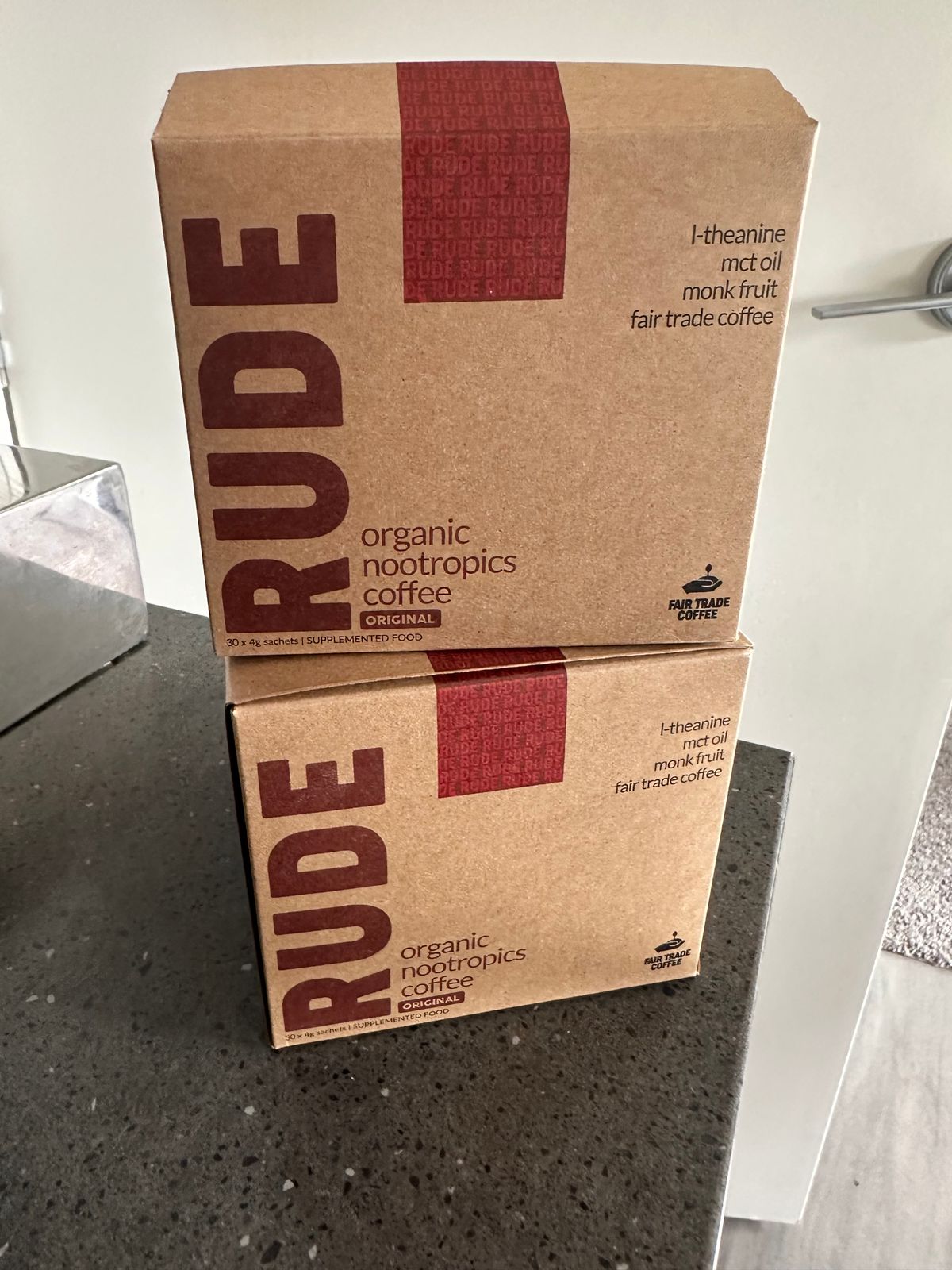 - RUDE Coffee has caffeine so it still provides the energy hit we love but the added nootropic ingredients reduce any negative side effects like anxiety, jitters, headache and energy crash. These nootropics also improve clarity and focus.