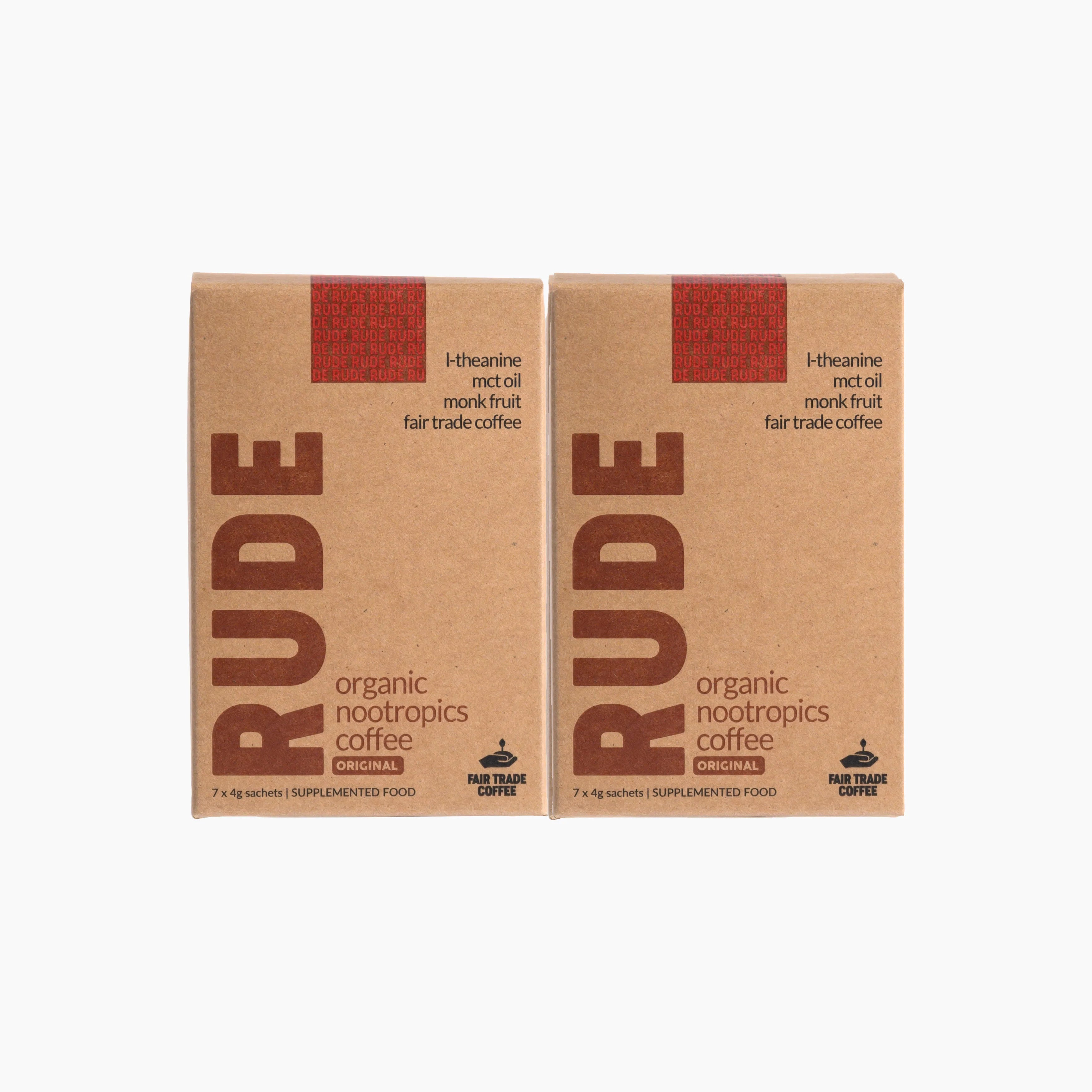 - RUDE Coffee has caffeine so it still provides the energy hit we love but the added nootropic ingredients reduce any negative side effects like anxiety, jitters, headache and energy crash. These nootropics also improve clarity and focus.