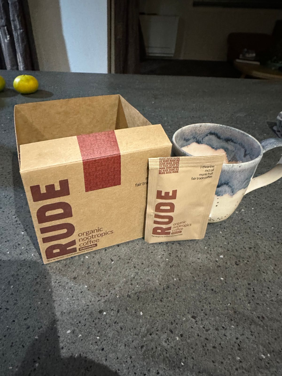 - RUDE Coffee has caffeine so it still provides the energy hit we love but the added nootropic ingredients reduce any negative side effects like anxiety, jitters, headache and energy crash. These nootropics also improve clarity and focus.